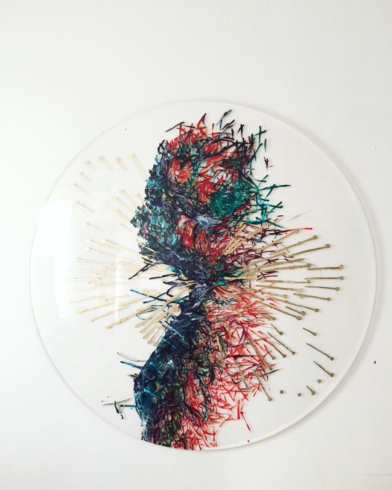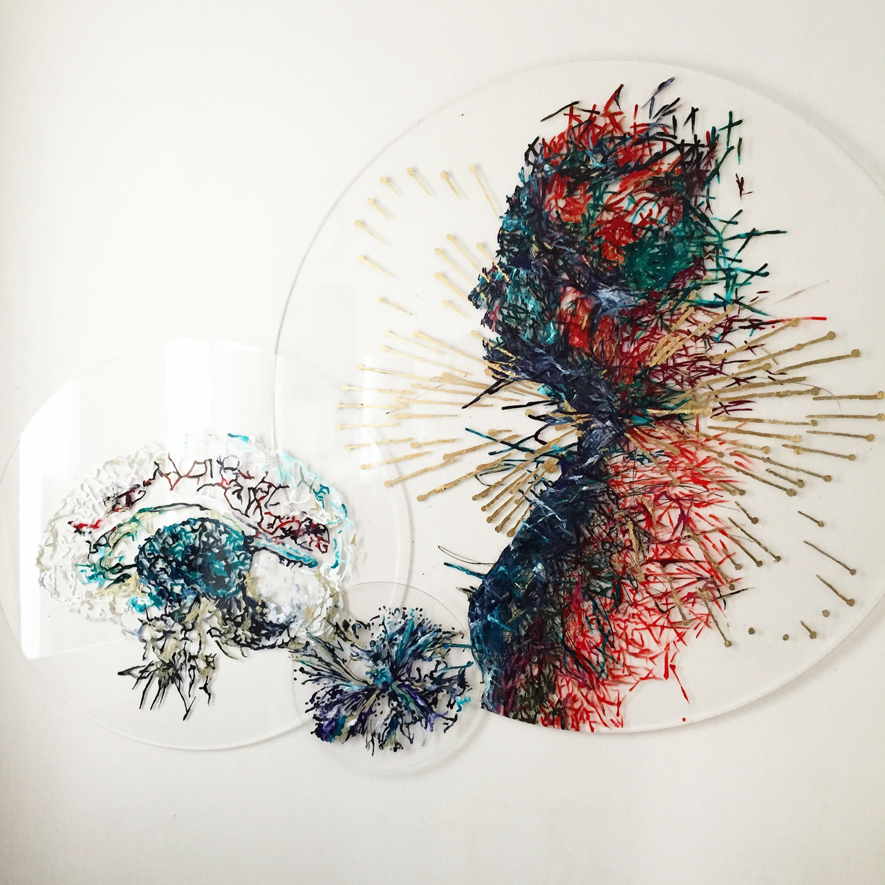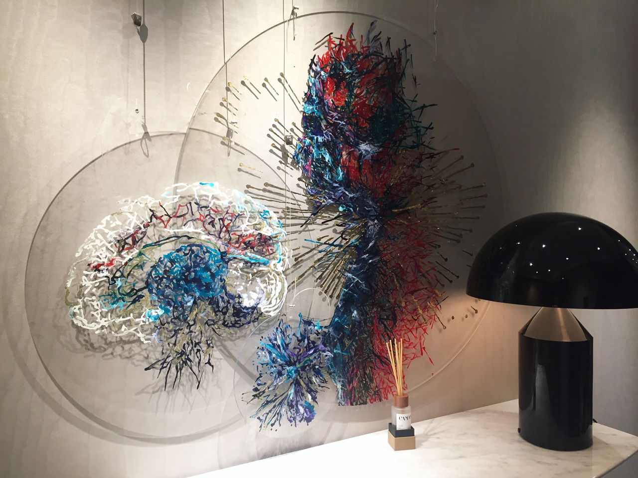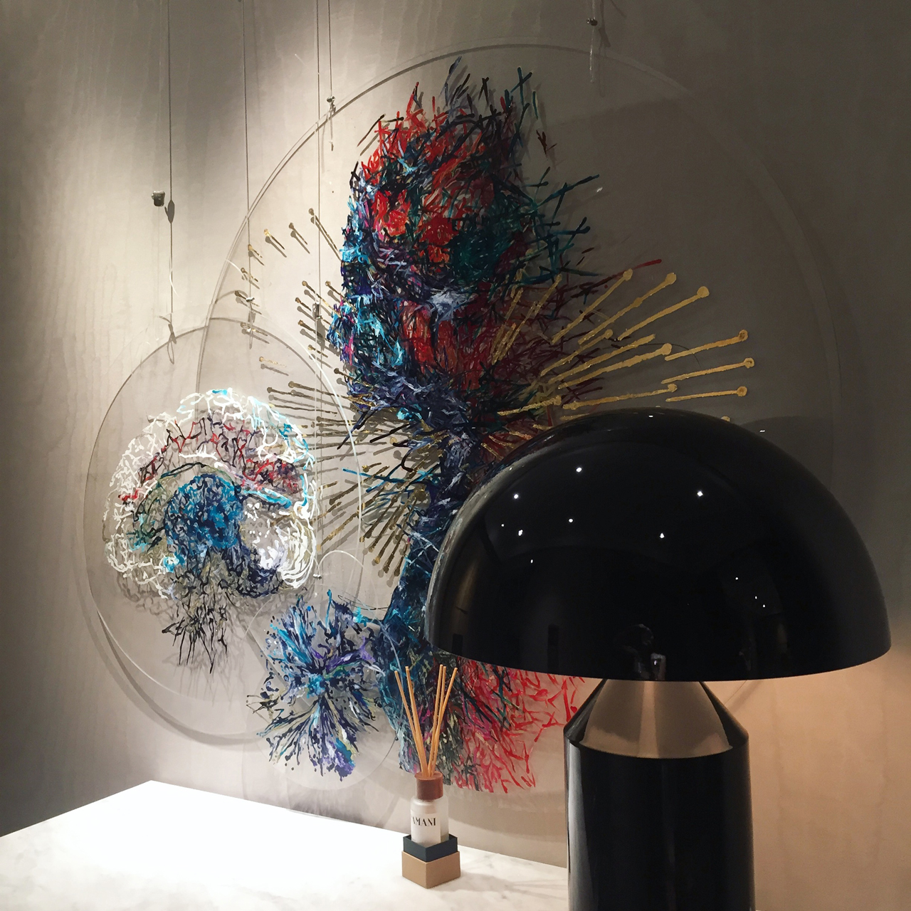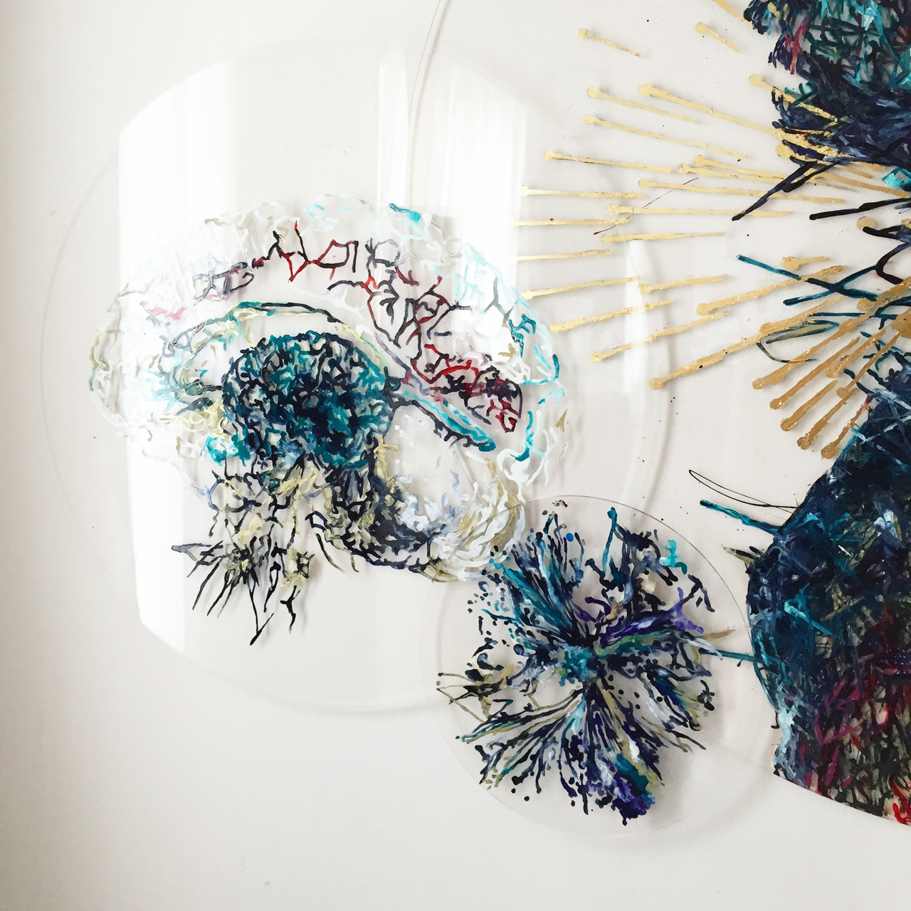 CERAMIC PAINT AND GOLD LEAF ON TRANSPARAN ACRYLIC