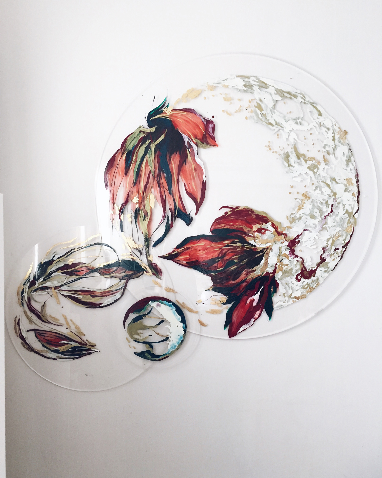 CERAMIC PAINT AND GOLD LEAF ON TRANSPARAN ACRYLIC